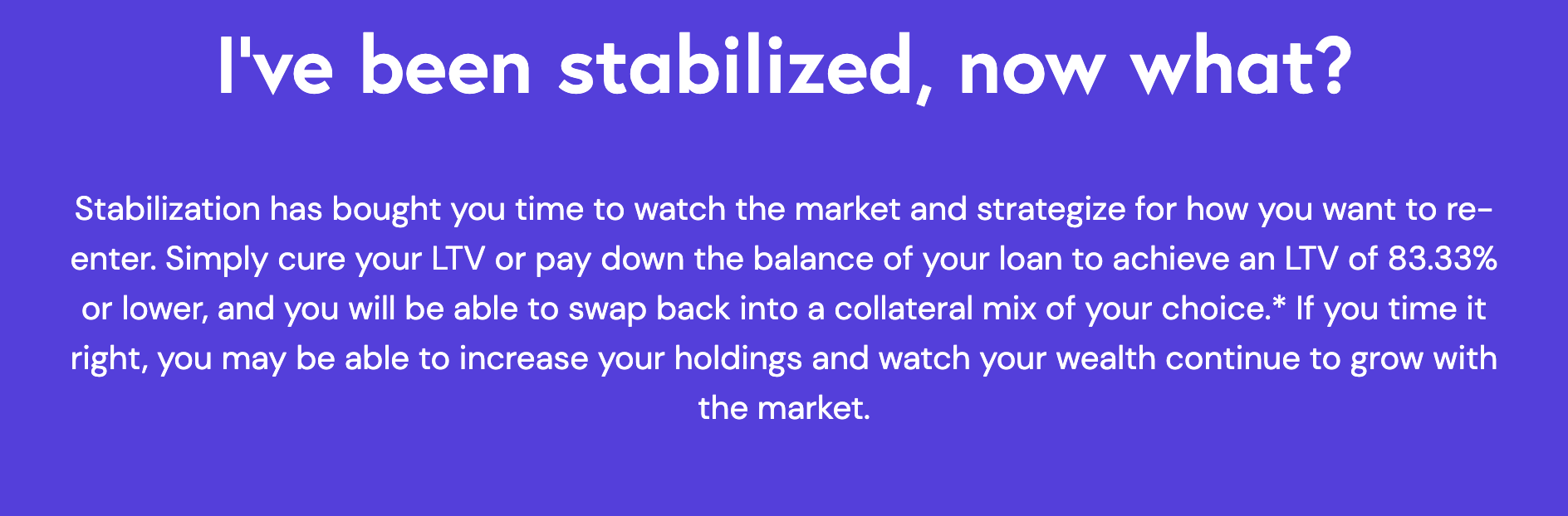 SALT Stabilization preserves the value of a borrower’s crypto portfolio during a market downturn and buys them time to manage their loan